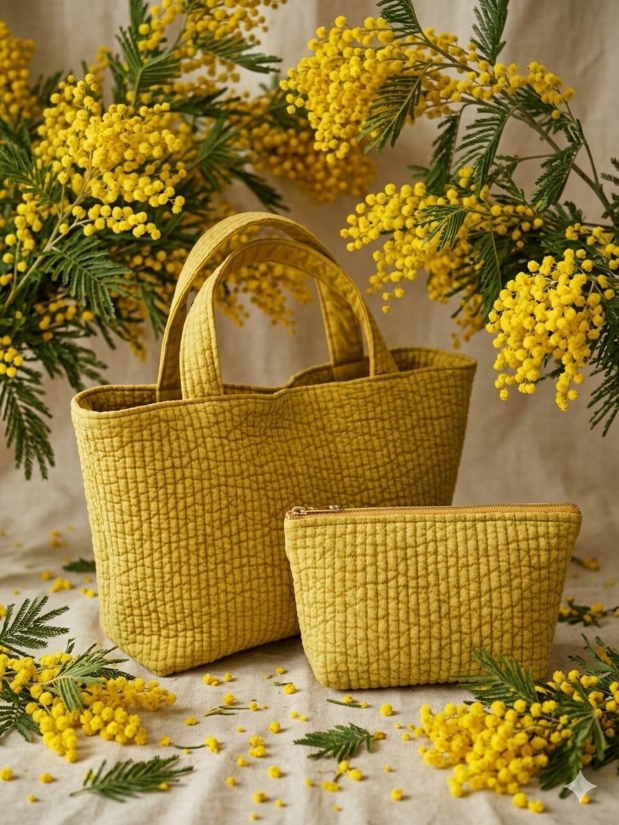 【3月7•8•9日限定】ヌビバッグ&化粧ポーチ (ミモザイエロー)